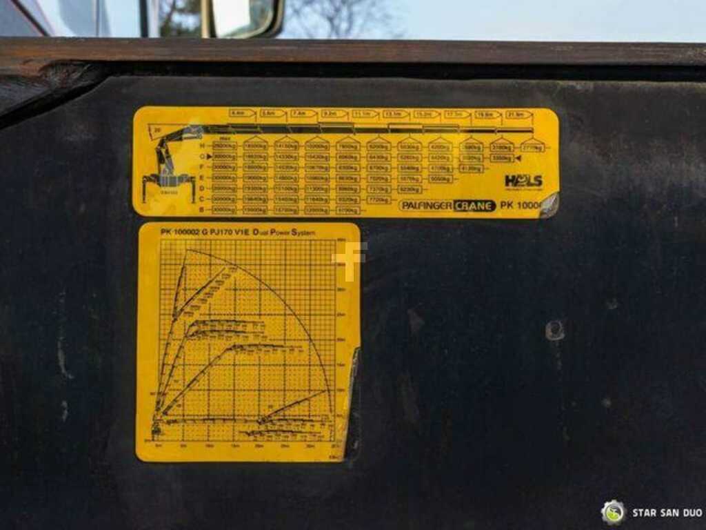 VOLVO FH 520 8x2 PALFINGER PK 100002 HDS Fly Jib Crane ID No.: 958 ________________________________________ Vehicle specifications: • Model: Volvo FH 520 • VIN: YV2AS50E762632380 • Drive: 8x2 • Year of manufacture: 2007 • First registration: 19.09.2007 • Engine power: 520 HP • Emission standard: Euro 4 • Mileage: 387,802 km • Transmission: manual ________________________________________ Crane specifications: • Palfinger PK 100002 • 8 hydraulic segments • Fly Jib – 6 segments • Radio control ________________________________________ Technical parameters: • Curb weight: 28,675 kg • Payload: 3,325 kg • Gross Vehicle Weight (GVW) in Poland: 32,000 kg ________________________________________ Cargo space dimensions: • Length: — • Width: — • Height: — ________________________________________ Overall vehicle dimensions: • Overall length: 9,100 mm • Overall width: 2,550 mm • Overall height: 3,900 mm ________________________________________ Wheelbase: • Axle 1-2: 2,000 mm • Axle 2-3: 2,670 mm • Axle 3-4: 1,370 mm • Last axle: liftable [P] ________________________________________ Front / rear suspension: • ________________________________________ Additional equipment: • ABS • Central locking • Electric windows • Immobilizer • On-board computer • Factory radio • Tachograph • Power steering • Air conditioning ________________________________________ Additional options: • — ________________________________________ Services: • Authorized service for cranes from FASSI, HIAB, EFFER, and others • Repairs of all brands of cranes and trucks • Spare parts available ________________________________________ Technical inspections and certificates: • We are UDT-approved • We conduct inspections and coordinate documentation with UDT • We conduct initial vehicle inspections at Diagnostic Stations ________________________________________ Warranty and preparation for operation: • Possibility to purchase a technical warranty for an additional fee • Professional preparation of the vehicle and crane for operation ________________________________________ Financing: We offer assistance in arranging a lease or loan for the purchase of a vehicle – ask us for details. ________________________________________ Location: Our headquarters is located in Starachowice. We invite you to inspect the vehicle in person and take a test drive. ________________________________________ Additional Information: Why choose our offer? • Experience and professionalism in 4x4, 6x6, 8x8 trucks, and vehicles with HDS • Comprehensive service: purchase, financing, service • Each vehicle undergoes a detailed inspection before sale ________________________________________ You can find more offers on our sales platform: ... ________________________________________ Don't wait – contact us today and schedule a vehicle viewing! ________________________________________ Legal Infor